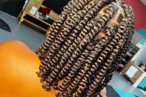 The twists are then secured at the end with a small rubber band or beads. The twists can be styled in various sizes, from small and tight to large and loose, and can be worn in many different ways. They are a low maintenance and protective hairstyle, that can be worn for several weeks, and can be maintained with regular moisturizing and oiling.