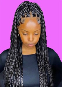 This hairstyle can take a long time to create and is usually done with synthetic hair extensions to add length and volume to the braids. Braids are small and tight and can be styled in different ways. It’s a protective style that helps keep hair hydrated and healthy.